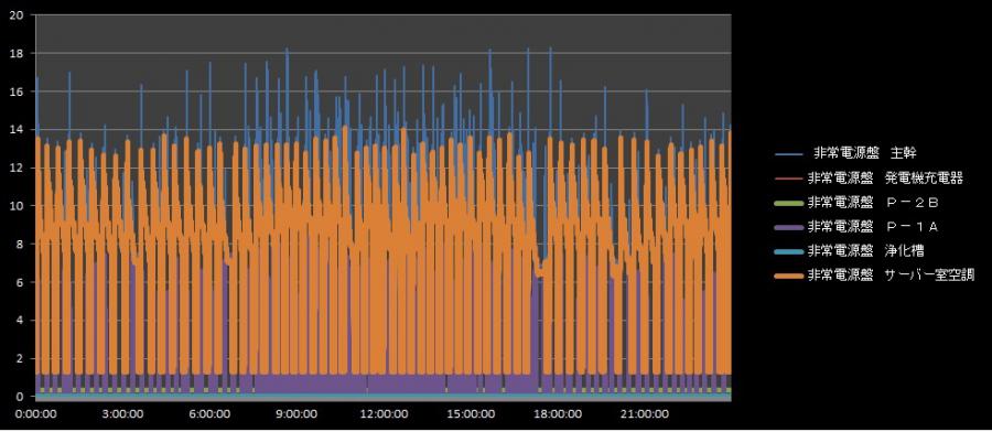 現在、高圧受変電設備機器(以降トランスと略す)に対して、負荷が複数接続されている場合、定格負荷の総計から、ピーク電力を計算して、トランス等の設備に必要な容量を計算している。しかし負荷の同時使用が限られている場合、ピーク電力は、想定値よりも大幅に下回り、設備が過剰となる問題がある。実際の運用におけるピーク電力を求めるには、負荷毎に電力を測定し、ここから個々のピーク電力を積算するシステムが必要であるが、現状販売されている汎用電力監視システムは、このような多回路電力監視が出来ない。
